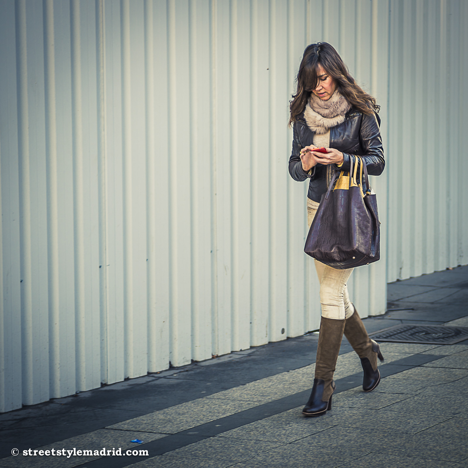 Bolso, Botas, Cazadora de cuero negra, Madrid, Marrón, Street Style, streetstylemadrid
