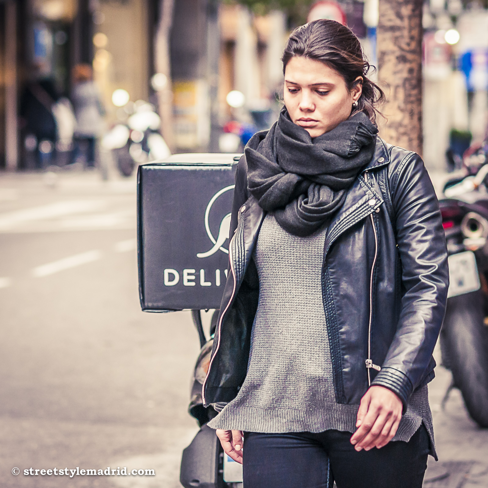Bufanda, Cazadora de cuero negra, Foulard negro, Madrid, Street Style