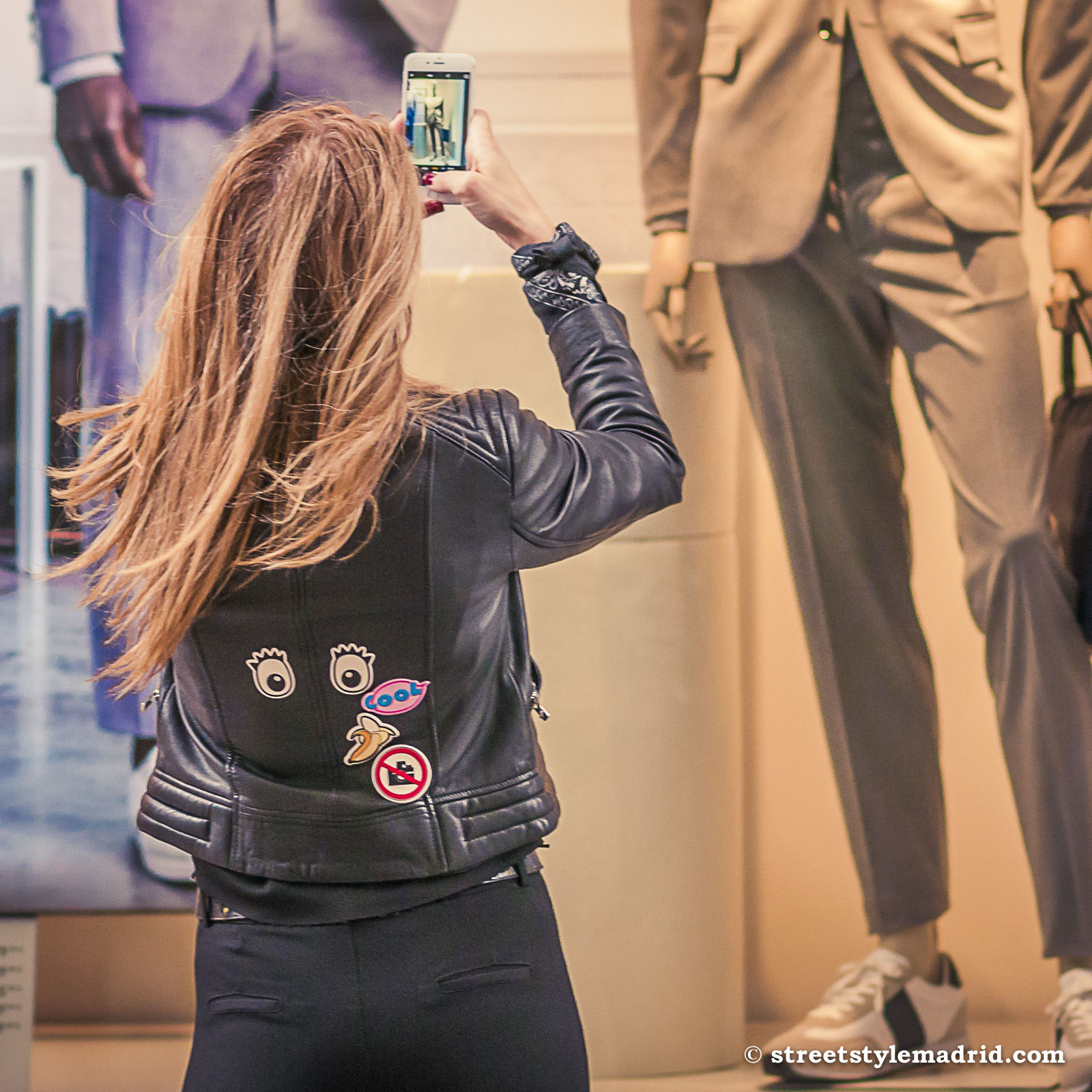 Cazadora de cuero negra, Leggings, Madrid, Negro, Street Style, streetstylemadrid