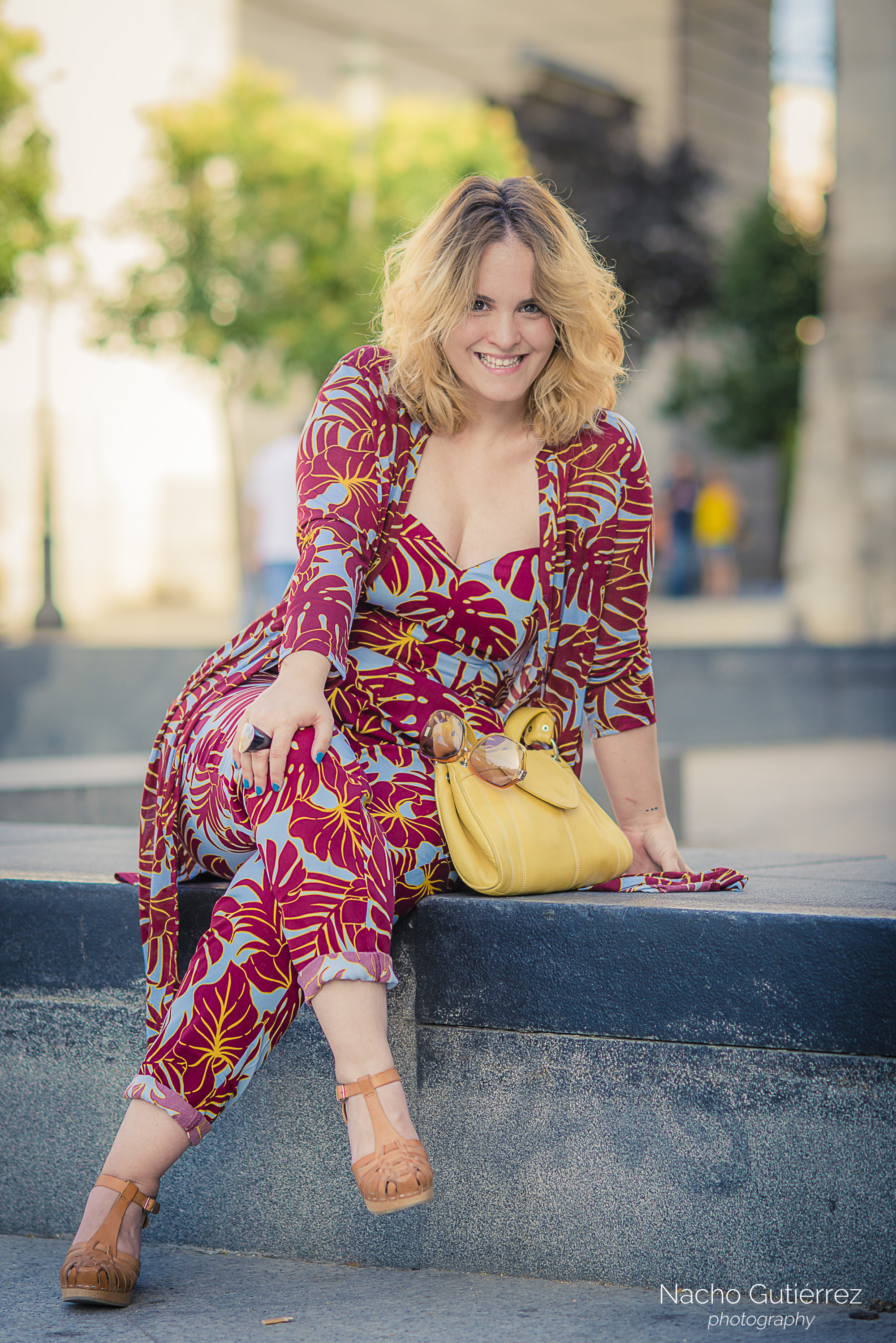Anitta Ruiz, Bolso Amarillo, Coordinado, Escote corazón, Estampado, Gafas de sol, Gafas vintage, Madrid, OOTD, Sandalias, Street Style