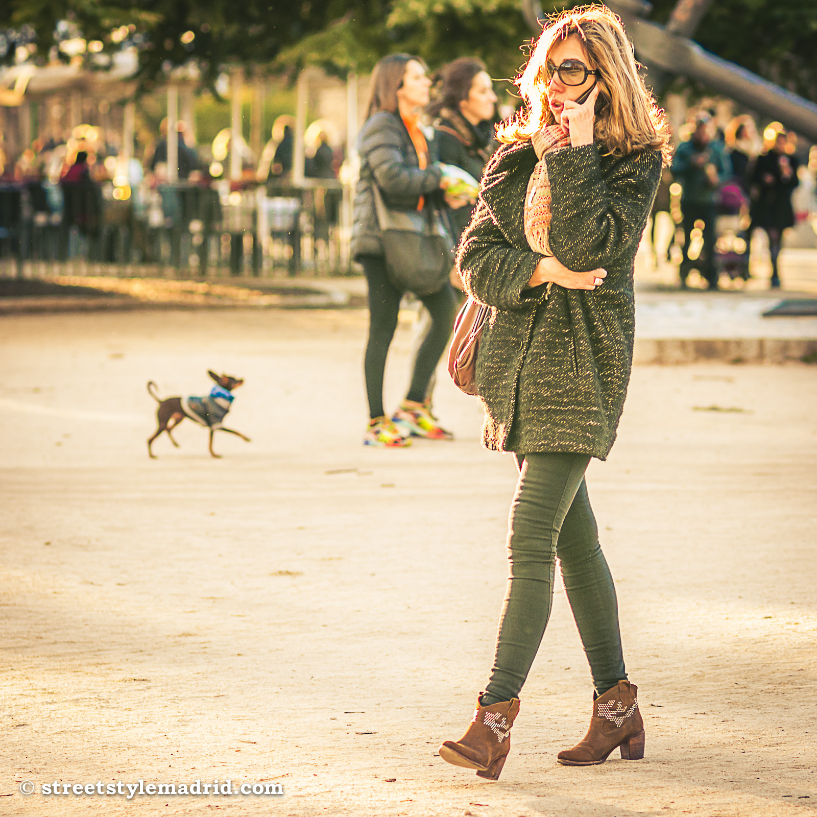 Bolso marrón, Bufanda granate, Gafas de sol, Madrid, Street Style