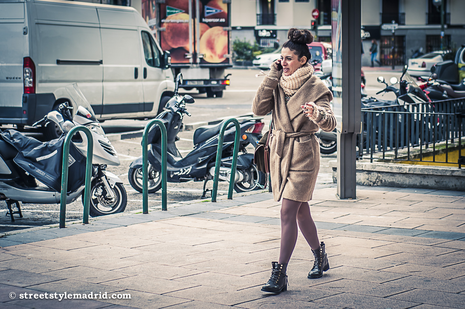 Abrigo, Ante, Bufanda, Camel, Madrid, Marrón, Piel, Street Style, streetstylemadrid
