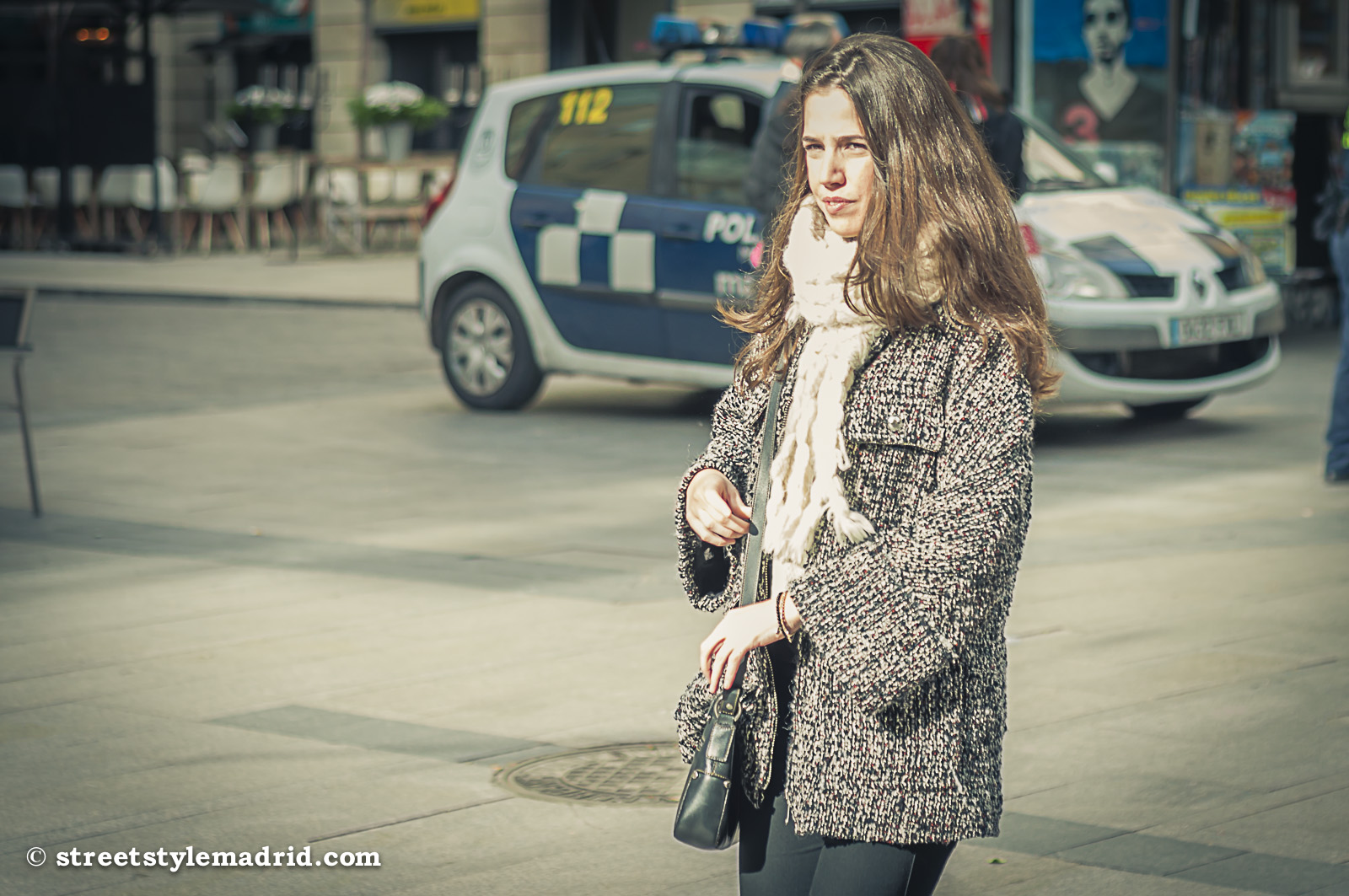Abrigo, Blanco, Bufanda, Madrid, Negro, Street Style, streetstylemadrid