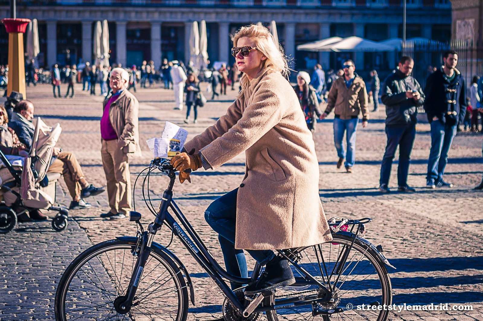 En los últimos días de frío por Madrid se mantienen los modelos. Abrigos camel, gorros y foulares.