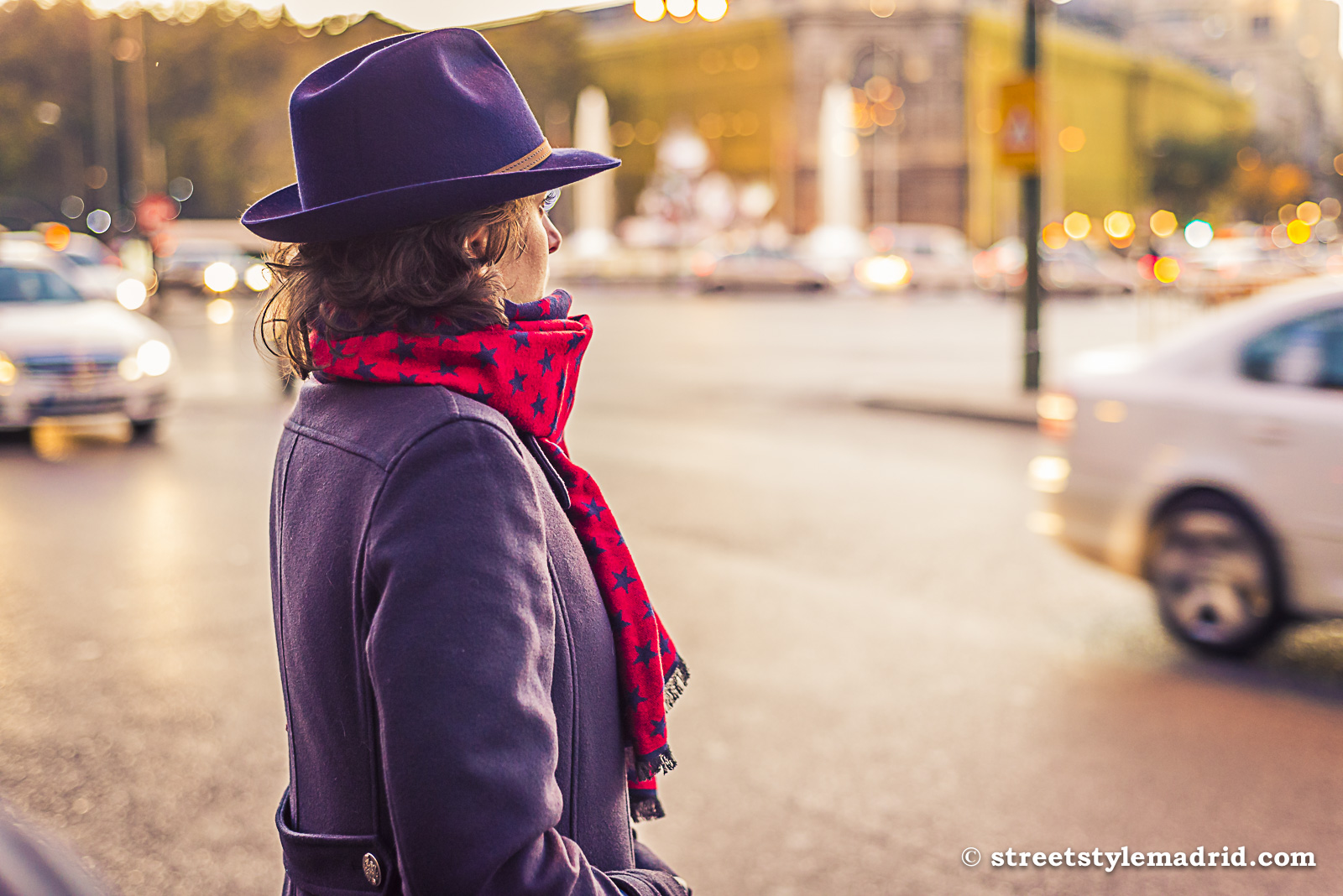 Abrigo, Azul, Burgundy, Cuadros, Foulard, Madrid, Street Style, streetstylemadrid
