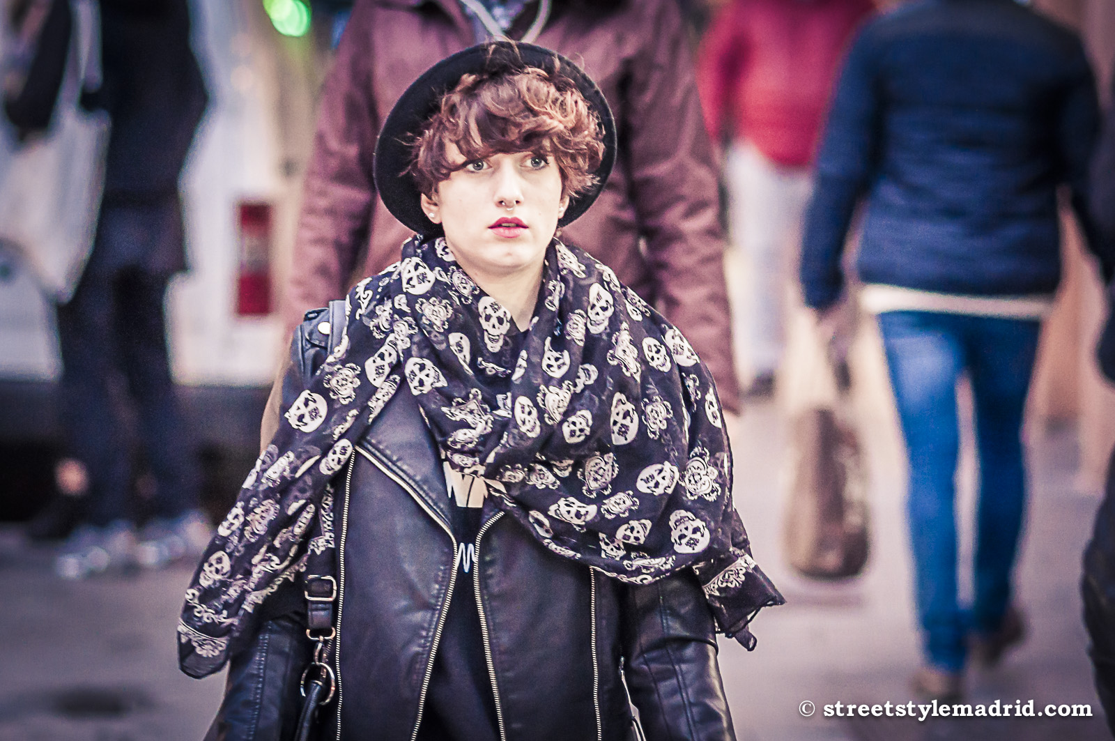 Bufanda, Cazadora de cuero negra, Foulard negro, Madrid, Street Style