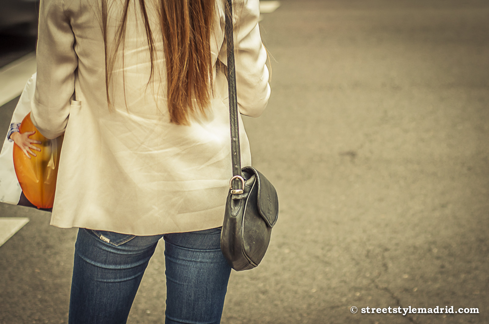 Bandolera, Cazadora, Jeans, Madrid, Street Style, streetstylemadrid, Zapatillas