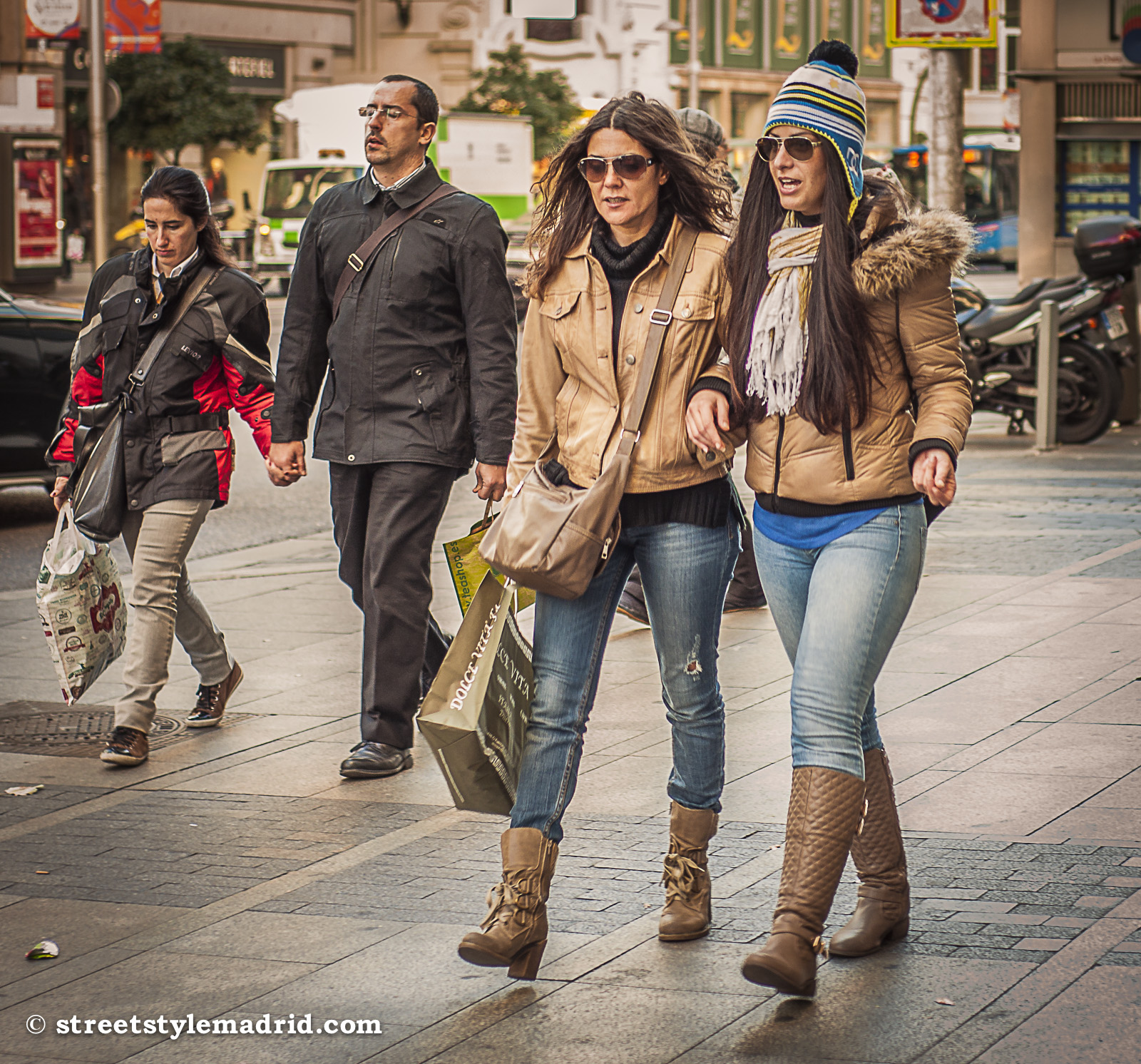 En los últimos días de frío por Madrid se mantienen los modelos. Abrigos camel, gorros y foulares.